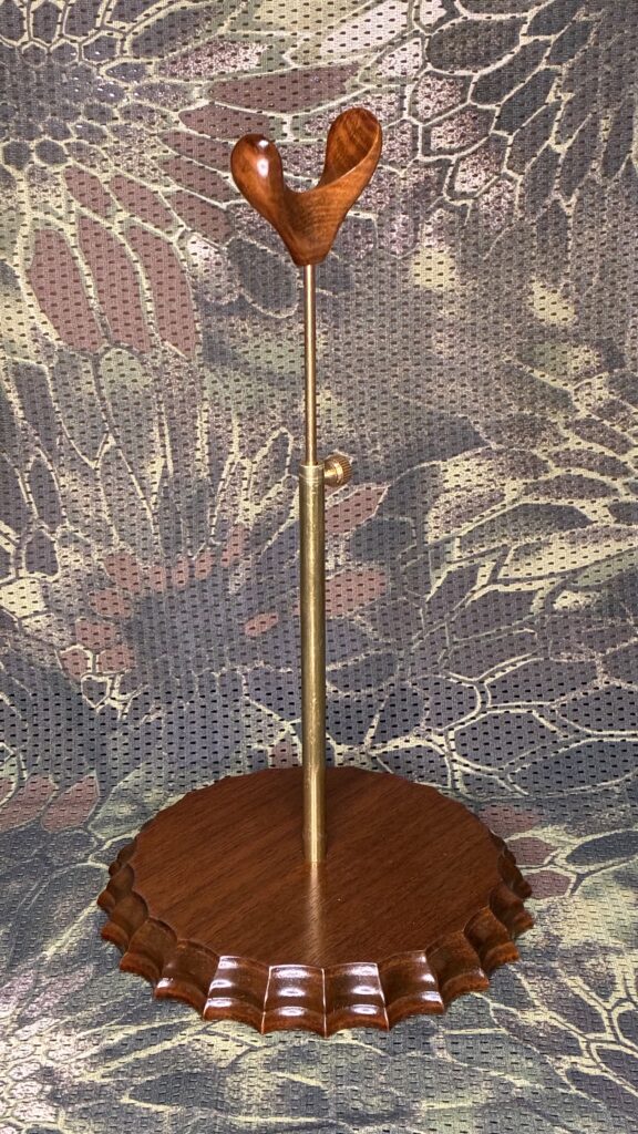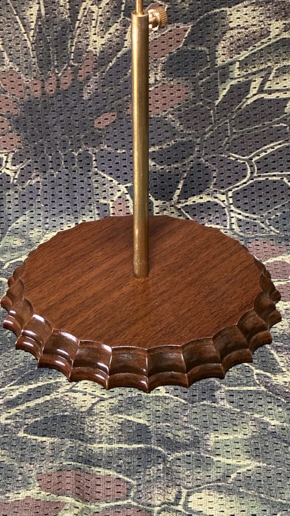 ドールを支える部分は木材の優しい丸みを感じさせる反面、台座部分は主張した複雑なデザインとなっています。